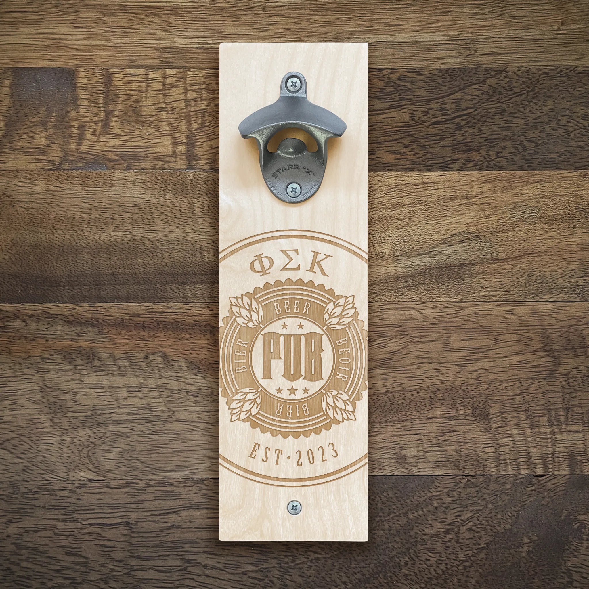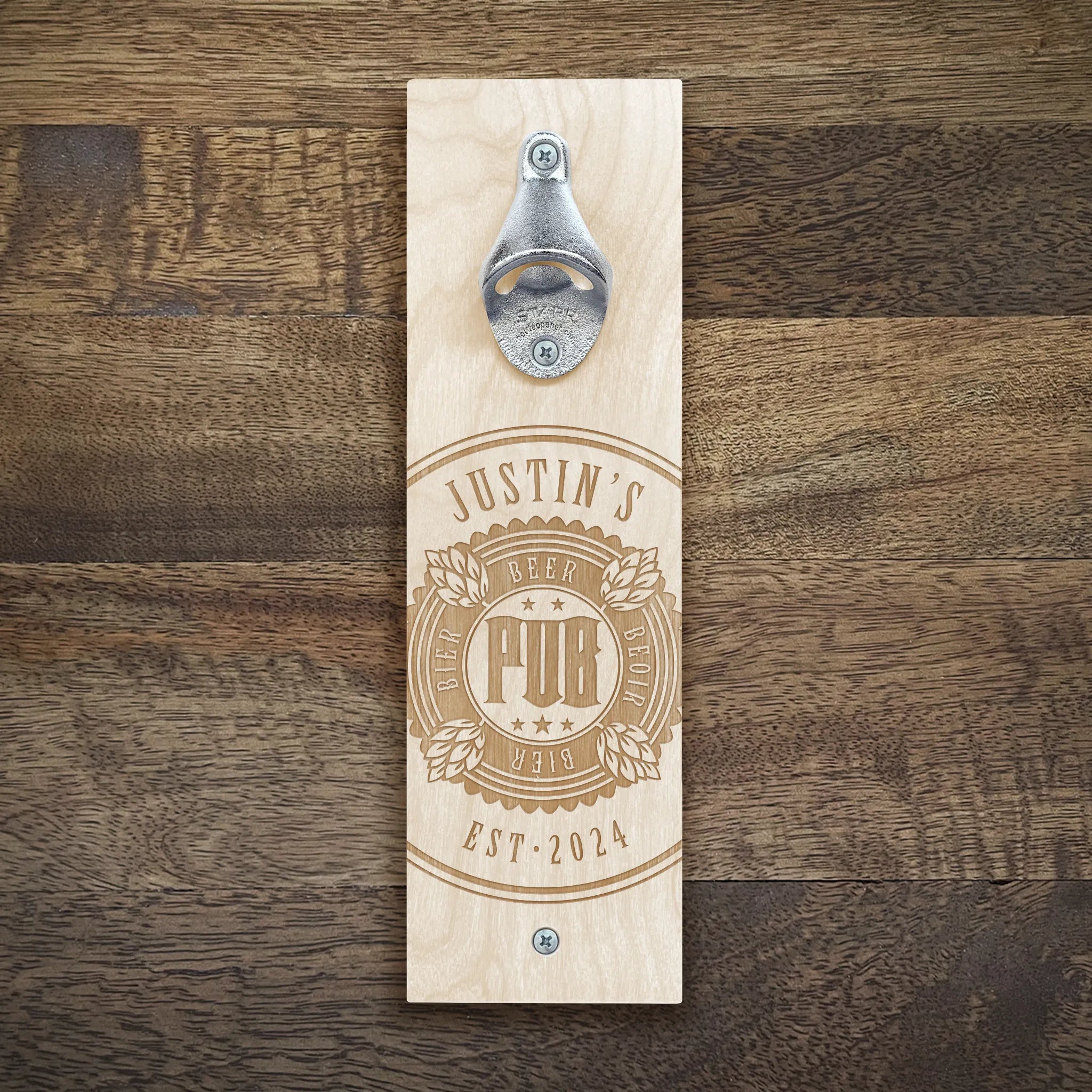 Gift the beer lover in your life with a wall mounted, custom bottle opener. Our handcrafted, wooden bottle openers put the fun in functional with a unique magnetic cap catching design.
