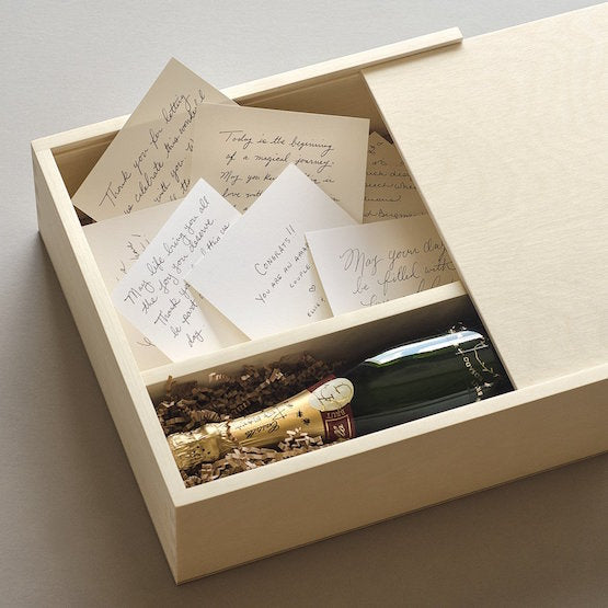Create a unique keepsake to hold mementos from events, travel, occasions, or letters from a significant someone. Open on a special date and reminisce and savor the memories. Don't want to add a bottle? Try our Keepsake Shoebox.