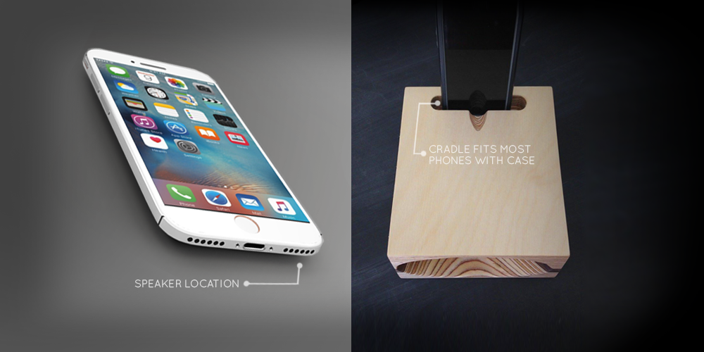 The Timbrefone™ is perfect for patios, picnics, kitchens, bathrooms, the office or anywhere you would like to enjoy some music without worrying about adapters, bluetooth syncing, cables, cords, batteries or a power source. Simply set your phone in the cradle and the sound is amplified.